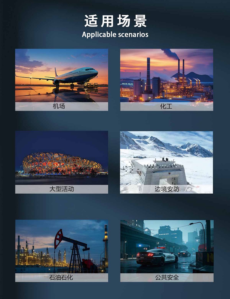 機場、核電站、政府機關、電力設施等區域對空域安全具有極高要求。一旦發生無人機闖入,可能導致嚴重事故甚至安全事故。該類設備可部署于周邊,形成有效電磁屏障,實現對敏感空域的全時防護。其1500米的攔截距離(針對御2、精靈4P等常見機型)能夠提前應對威脅,保障關鍵區域的安全運行。